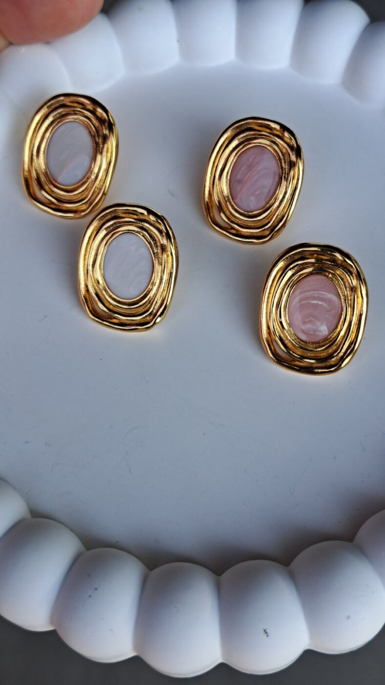 Σκουλαρίκια οβάλ χρυσά vintage. Με σμάλτο λευκό ή ροζ.